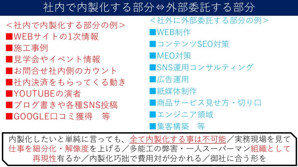 ■ 外部委託すべき部分・・・①集客力・②情報力・③WEB専門分野