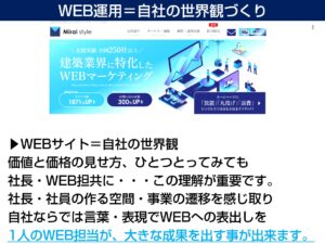 今後リブランディング、SEOでは10万アクセス/月、WEB担部門強化を念頭に置き、新築住宅事業の厳しい時代環境に対して、抗って伸ばしていく事を心の中で誓いました。